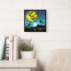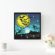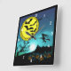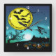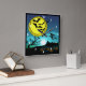 Det unga häxaflyget Amongst väggen för natthimmel tar tid på. I de midnatta blåtten tända av natten, denna unga häxa tar henne flyg. Det är en full gul måne, med fladdermöss- och jackolyktor.