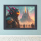 De uppringande kanvastrycken visar en dystopisk värld för science fiction fläkt cyberpunk art fläkt. Anrop är Steamy Raimon original digital art.