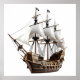 This is a detailed 3D rendering of a classic pirate ship. The ship is depicted with intricate wooden textures, multiple white sails billowing as if caught by the wind, and black rigging. Two masts fly black pirate flags adorned with the skull and crossbones. The rendering captures the grandeur and detail of such a historical sailing vessel, suggesting themes of adventure, piracy, and exploration on the high seas. The neutral background focuses all attention on the ship itself.