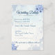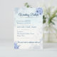 Featuring delicate blue floral elements, refined typography, and a clean layout, this card is perfect for presenting important information such as schedule, location, dress code, and accommodations.