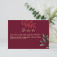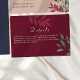 Dela viktig information med dina gäster med detta eleganta höstliga bröllopsdetaljkort. Designat med en djup burgunderfärgad bakgrund, gröna accenter och klassisk guldsrift är detta kort perfekt för höst- och vinterbröllop.