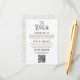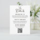 Enkel, minimalistisk layout med QR-kod på framsidan. Elegant ljus väderbiten lada trä på baksidan. Detta mångsidiga kort kan komplettera en mängd olika bröllopsdesign och -stilar, men det är särskilt vackert för en rustik landlig bröllopsfest.