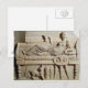 Roms Detail från en sarkofagus som skildrar en kvinna som sitter på en bänk (sten) vid Musee National, Beirut, Libanon. Detaljen från en sarkofagus som skildrade en kvinna på en bänk skapades under 2000-talet.