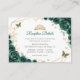Kortet för mottagningsinformation för Emerald grönt, guld och vit blommigt Quinceanera. Funktioner, typsnitt för skript, guld, vattenfärg, ro och tiara. Perfekt för en elegant prinsessan stil glam firande. Anpassa med dina egna detaljer.
