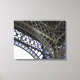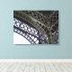 Stretched canvas wall Art-konstens utskrift med ett närliggande foto av berömden Turio attraktion i Paris, Frankrike. Eiffel Torn har ett unikt, komplicerat stålarbete i sin arkitektoniska utformning. Makrofotot har en vit bakgrund med svarta, vita och grått-nyanser.