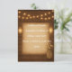 Färdigställ ditt rustika bröllopspaket med detta charmiga infogningskort med lysande strängljus och detaljer av murade krukor. Perfekt för att dela information om mottagning, boende, bröllopswebbplats, transport eller andra speciella evenemang med era gäster. Designat för att samordna vackert med rustika, ladugårds-, bondgårds- och countrystyla bröllop, detta infogningskort lägger till både funktion och stil till er brevpappersserie.