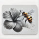 en honungsbin som pollinerar en hibiscus-blomma. Denna svartvita bild belyser det känsliga strukturen i biets fuzzy-kropp som står mot mjuka petaler och avslöjar en värld som ofta förbises.