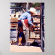 Den här unge rodeo-cowboyen fångas upp i sina sporrar precis innan han rider sin nästa tjur.