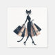 En moderiktig, antropomorfisk katt framställs med flera shopping bag, med frasen "Detaljhandelsbehandling" skriven på en av påsarna. Kattdjuret är påklädt och bär solglasögon, vilket utesluter en sofistikerad luft.