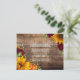 Specifikationskort för solrosor, pumpa och burgundy Ro Rustic Bröllop. Ett underbart kort där du kan lägga till extra-information om händelsen i. Har höstlöv över en rustik träbakgrund. Vänd ljus på toppen med ett hjärta.