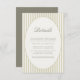Behålla dina gäster informerade i stil om detta minneskort för den visemiska Rand-Grönten Bröllop. Det här kortet är designat för att komplettera din lekande men ändå polerade bröllop-svit och har en mjuk handdragen grönt rand och en ren, modern layout för all din extra-information - logi, transport, klänningskod eller bröllop helg-evenemang. Det här kortet är med sin ljusa charm- och anpassade-format perfekten för att allt som gästerna behöver veta, samtidigt som du håller din stationära dator sammanhängande och vacker.