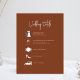viktig information med gästerna som använder det här bröllop-informationskortet med en rik-burgundisk utformning med kalligrafi-skript för elegant. I den här moderna infogningen finns en tydlig tidslinje för dagen, ceremoni och mottagningstid samt lekande middags- och dansikoner för att framhäva firande. En bekväm webbplats med QR-kod bröllop gör det enkelt för gästsvar från bröllop, medan den sofistikerade layouten passar in sömlöst i elegantens kontorssvit. Perfekt för snyggt par att planera en modern händelse.