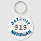 Typografin har "Michigan" och "Detroit" i böjd text med riktnummer 313-prefix för Detroit-området, i grunge /missed look typsnitt.