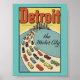 Detroit-motorstad,poster,art,design,byggnad,post,order,gåva,vägg,deka,art,gammal,stil,bilar,lastbilar,stor stad