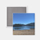 En vacker solig dag i slutet av september 2017. Gorgous blå himmel reflekterar i det vackra vattenen av Detroit Sjö, Oregon. Unika öar och kringliggande bergsområden som är täckta av träd. En vacker plats!