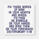 Laga mina ord i era hjärtan och sinnen, bind dem som symboler på händer och bind dem på era förhuvuden. Deuteronomi 11:18