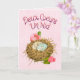 A romantic French love card featuring two speckled eggs resting together in a warm birds nest surrounded by flowers. The phrase "Deux Coeurs Un Nid" means "Two Hearts One Nest," symbolizing building a life together. A sweet card for anniversaries, weddings, engagements, or simply celebrating love.Personalize the inside with your own message or leave it blank.