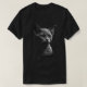 Devon Rex Cat Dark Art Men's T-Shirt." A fierce monochrome portrait of a large-eared Devon Rex. This gothic illustration is perfect for dark art fans and owners of this unique, curly-haired cat. Show your Devon Rex pride! A comfortable black men's tee for a cat dad gift.