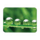 Four drops of water rest on a blade of grass reflecting the world around them, in this beautiful, elegant, nature meditation magnet.