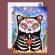 Den här utformningen har en katt med ansikte-färg av sockerskalle, månljus bakgrund med marigment och fjärilar
