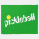 Den här sportsliga designen av roligten har vit diagonal PICKLEBALL-text med ett sött gult-spel boll för pricken på "i", mot en ljus bakgrund av grönten. Texten och färg i den här utformningen kan vara personlig.