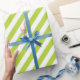 Diagonal lime green and white stripes create a vibrant, dynamic pattern. The bold lines convey a sense of movement and energy.