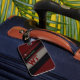 Diagonal rand med ditt namn och initialer på en coola och modern mörk röd bakgrund med bilden av ett litet flygplan