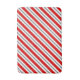 Badmattan i ett diagonalt strippat mönster med en sommar, känner sig i djup läppstift röd och vit, accentuerad med grått / grått