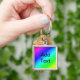Diagonal regnbåge - blå till Grönt Fyrkantig Silverfärgad Nyckelring