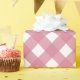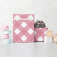 Sofistikerad papper förpackning har rosa och vita diamanter i ett fet diagonalt buffel. Rosa och vit gingham mönster var designade från början.