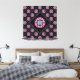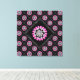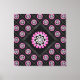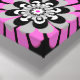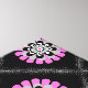 En fluffig blomma med många lagrar av petaler i svarta, grått, vita och rosa.