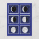 Vykort i ett diagram över faser i måne på en bakgrund av stjärnor