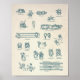 Diagram över knoppar och splitsar för sjömän, båtar, fiskare, med en antik papper bakgrund och ett vintage utseende. På bildtexterna visas vilka knappar och illustrationer som ska användas. Från den rullande hatten till fjället, till tarmen, vet vilken bra sjöman som helst behöver veta. Underbar ram för fiske eller sjödecor eller strandhus.