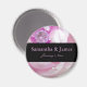 Snyggt diamant i en magnet personlig i rosa ros bröllop med namn och datum.