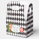 Klar, minimalistisk, svart och vit födelsedag. Tropiska blommor. Starkt diamant mönster är mönster i led med ovala etiketter för födelsedagsfester. Kan också användas för bröllop och annat tillfälle.
