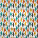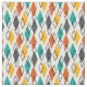Denna väv har en modern utformning av diamanter i orange, gult, turkos, grått, som skisserats över hela fält i vitt.