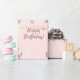 En elegant, glamorös och giftig papper. Ro guld, rosa med diamanter från färgaden ro vid Faux. Mörk skrev stil-skript och texten: Grattis på födelsedagen!