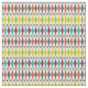 Denna väv har en modern design i mitten av århundradet av utsträckta diamanter och stjärnor på en vit fält.