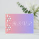 En dekorativ rosa och blått bröllop, den här OSA kort har ett ornat, vitt gräns med diamantdekorationer på framsidan och OSA text på baksidan som kan anpassas med dina egna uppgifter. Denna riktigt elegant bröllop-station kommer att imponera på alla som har turen att få den.