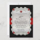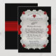 Briljant sofistikerad och stilren 40-årsjubileumsinbjudan med svart bakgrund och rubinröd falskt tryckt satinband med diamanter och tryckta rubinhjärtan arrangerade i en rundad rektangulär ram. Det falska röda satinbandet och den svarta bakgrunden fortsätter på baksidan för en polerad, sofistikerad look. Originaldesign av Holiday Hearts Designs (alla rättigheter förbehållna). Observera att alla dekorationer är tryckta.