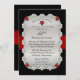 Briljant sofistikerad och stilren 40-års bröllopsjubileums inbjudan med svart bakgrund och rubinröd falskt tryckt satinband med diamanter och tryckta rubinhjärtan arrangerade i en rund rektangulär ram. Det falska röda satinbandet och den svarta bakgrunden fortsätter på baksidan för en polerad, sofistikerad look. Originaldesign av Holiday Hearts Designs (alla rättigheter förbehållna). Observera att alla dekorationer är tryckta.