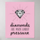 Den här rosan poster med en typografisk design med ett diamantcitattecken som lyder "diamanter görs under tryck" skapat med handskrivet avslappnad och penseltecken. Och det omfattar naturligtvis en stor diamant biet. Stressa är en väsentlig del av att uppnå något värdefullt. Så låt oss omfamna det och få oss diamanter! Rosans bakgrund kan ändras. Ett underbart dekorativt biet för hennes sovrum!