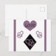 Svart och lila hjärtformer mönster, tillsammans med diamantformer (harlequin), dekorera den här coolan, vitt vykort! Ord "kärlek" visas i lilans hjärtan, skriven i svart, och det finns lila rand på vykortets sidor! Det här skulle vara perfekt för Alla hjärtans dag, årsdagar, bröllop eller födelsedagar! Diamantformer och Hearts "Kärlek" Mönster © 2019 Regina BlankCitizen.
