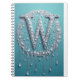 Elegant diamantinkrusterad W-monogram emblem på en teal glittrig bakgrund som förmedlar lyx, glamour och premiumstil. Perfekt för smycken, mode, logodesign, monogram-varumärke och lyxmarknadsföring.