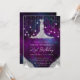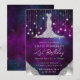Denna glamourösa inbjudan till 21-årsfirande har en klänning i diamantstil som kontrasterar mot en rik purpurfärgad galaxbakgrund med lysande strängljus för en lyxig, modern utstrålning. Silverglitteraccentuerar lägger till extra lyster, medan det kosmiska bakgrunden tillför djup, drama och en magisk festlig känsla. Med detaljer som skimrar och en stilren layout sätter denna design tonen för ett oförglömligt 21-årsfirande fyllt av elegans, glitter och himmelskt charm.