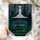 Denna glamourösa inbjudan till 21-årsfirande har en klänning i diamantstil som står mot en djupgrön galaxbakgrund med teal-, smaragd- och midnattsfärgade nyanser. Mjuk strängbelysning med bokeh och skimrande himlakroppsaccentuerar ger värme och lyster, medan detaljer i silverglitter förstärker den lyxiga, moderna estetiken. Med sin rika färgpalett och magiska kosmiska atmosfär sätter denna design den perfekta tonen för en oförglömlig 21-årsdag fylld av elegans, glitter och firande.
