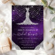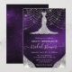 Denna glamourösa bröllopsfestinbjudan har en skimrande diamant-inspirerad klänning mot en djup lila galaxbakgrund fylld med skimrande stjärnor, glittertexturer och mjuka bokehsträngljus. Kristallina accenter i kaskadform ger strålande glans, medan den eleganta layouten förstärker den lyxiga, moderna estetiken. Med sina rika kosmiska toner och bländande glans sätter denna design den perfekta tonen för en stilfull bröllopsfest fylld med glädje, elegans och firande.