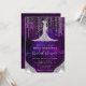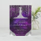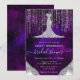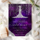 Denna glamourösa bröllopsduschinbjudan har en skimrande diamantliknande klänning mot en djup lila galaxbakgrund fylld med skimrande stjärnor, glittertexturer och mjuka bokehsträngljus. Kaskaderande kristallina accenter ger strålande glans, medan den eleganta layouten förstärker den lyxiga, moderna estetiken. Med sina rika kosmiska toner och bländande glöd sätter denna design den perfekta tonen för en stilfull bröllopsdusch fylld med glädje, elegans och firande.