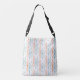 Denna korsning av väskan har en modernt utformning av lodrät linjer med diamanter och ovaler i tre olika utformningar som upprepas över hela konstruktionen. Om du tycker om designen men föredrar olika färg, säg mig.