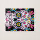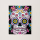 Den Diameter de los Muertos (day of the dead) sockerskallen omges av färgrika blommor.